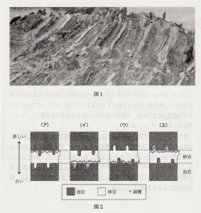 1⃣ 日本列島の海岸では、次ページの図1の写真のような地形がしばしば観察され